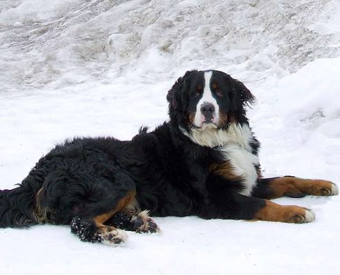 Compagno fedele della sua sposa, una dolce bernese dalla quale è inseparabile.